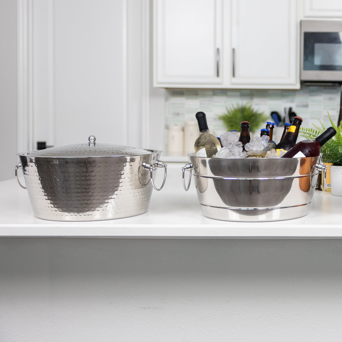 Metal drinks tubs for kitchen, dining, bar, or patio.  Stainless steel with no leaking and no bucket condensation.  Perfect drinks tubs for your next wedding, birthday, or holiday party.