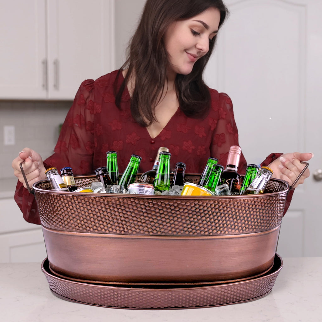 CHEERS Beverage Tub with Stand for Parties Hammered Antique Copper | BREKX