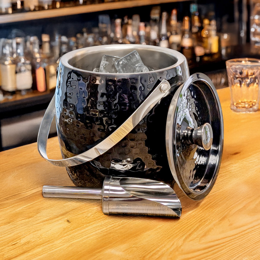 MULTI-FUNCTIONAL: Use as a bar ice bucket or perfect for use as a wine cooler bucket or champagne holder. This insulated steel bucket makes for the best drink chiller.